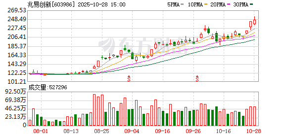 截至10月28日收盘,兆易创新股价报246.95元/股,总市值达1648亿元,今年股票年内涨幅达131.97%。